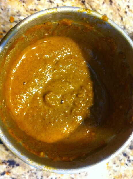 pollo y maní mantequilla de CurryIngredientes2 pechugas de pollo cortadas en trozos de tamaño bocado3 cebollas4-6 dientes de ajo1-2 chilespedazo de jengibre1 pimiento rojo o naranja3 palos de apiolata grande pelado tomates ciruelacucharada de puré de