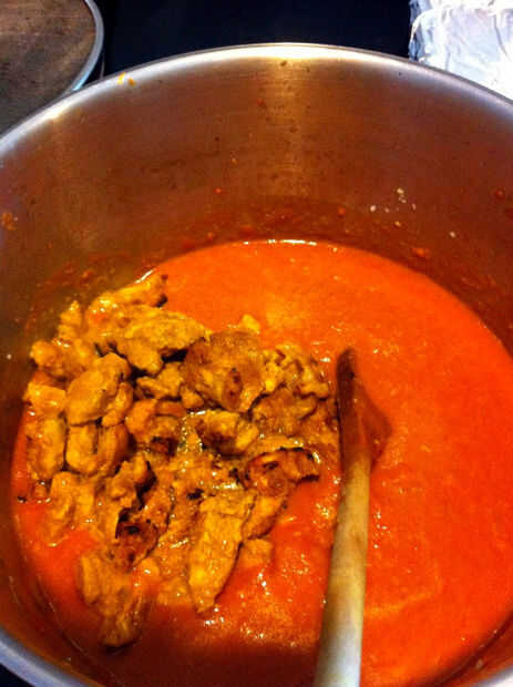 Dejar cocer 30 minutos a una hora. Esto espesa la salsa, se casa con el sabor y hace que el pollo consigue todo tierno.
