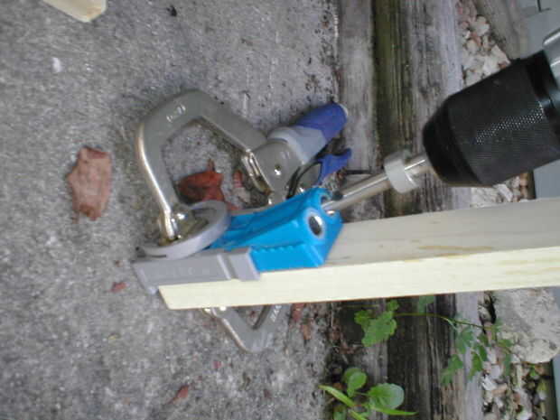 Cuando usted construya el marco, mejor no hacerlo en el piso como lo hice. La razón es porque la abrazadera levantará las piezas cuando les taladra juntos y terminarás con un marco que está torcido.