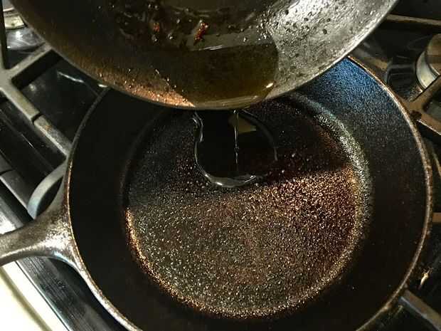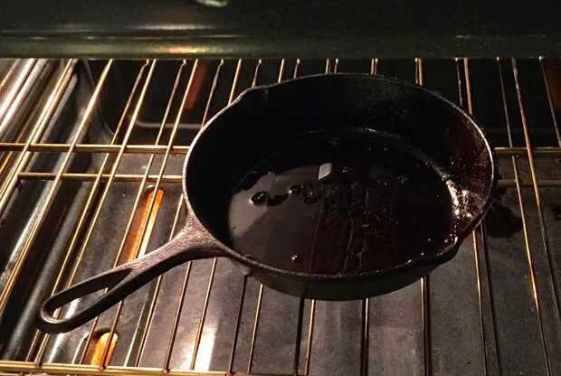 Vierta la grasa de tocino y grasa en la sartén de hierro fundido. Coloque la sartén de hierro fundido en el horno precalentado hasta que la grasa es muy caliente.