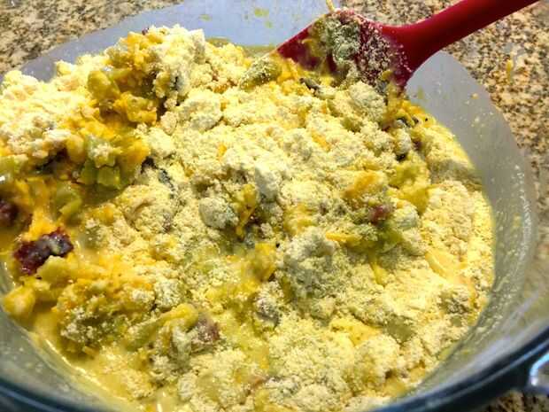 Indicaciones:(2) cajas de Jiffy Mix de pan de maíz (8,5 oz)(1) libra de carne molida(2) latas de crema de maíz(1) caja de Velveeta mexicana estilo queso (el cuadro pequeño - 16 oz)(1) paquete de temporada de la taco suave(a) Mix Mix de pan de maíz de