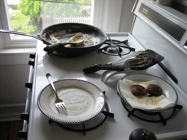 Paso 5 - lamer el plato limpio y luego limpiar la cocina.