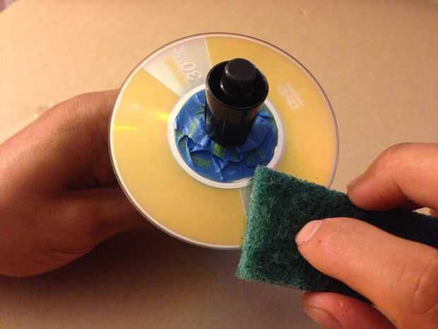Tome el Scotchpad o papel de lija y lijar ligeramente la zona en orden para la pintura se adhieran mejor.