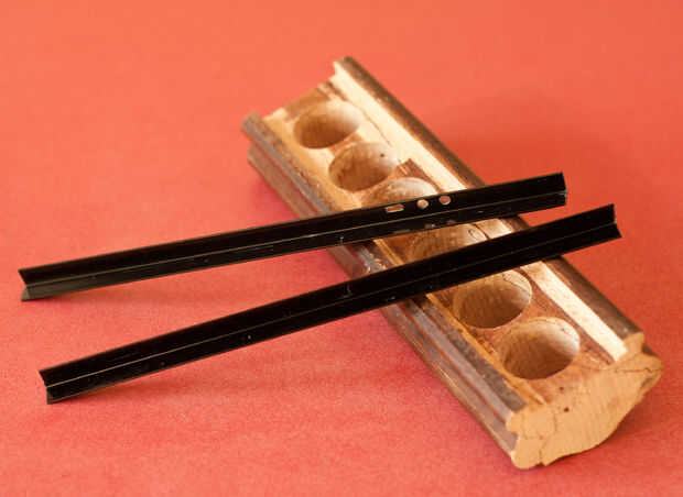Ya que necesitaba un marco fino para el pcb, para permitir el interruptor y los botones que se pega al lado del reloj, decidí usar un par de barras de plástico negro con perfil L. Yo los agujeros perforados y había rematado con un pequeño archivo.