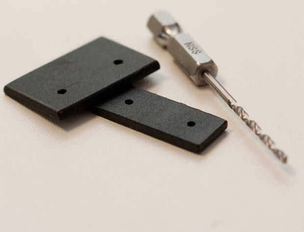 Taladrar cuatro orificios para los tornillos e hice surcos aceptar cabezas de los tornillos.