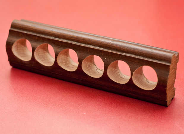No tenía la cámara conmigo, y perforé la barandilla a la vez, así que no puedo Mostrar la pieza intacta. Usé 30mm Brocas de taladro para el reloj anterior, luego que curar la madera con carcoma veneno ya que había algunos agujeros en ella.