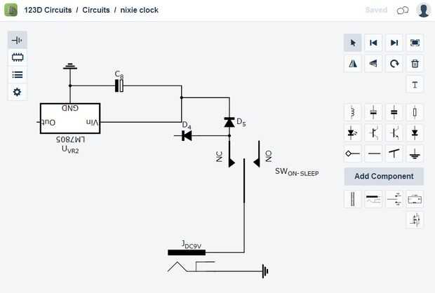 Desde el primer reloj nixie ya estaba equipado con un circuito muy ajustable por el usuario, con predisposición para agregar módulo RTC y otros sensores externos, mantuve ese mismo esquema [actualización: he añadido una interruptor de posición para mantener el chip de potencia pero los dígitos de y hay un diodo adicional, D5, que es idéntico a los demás 1N4001-4004].