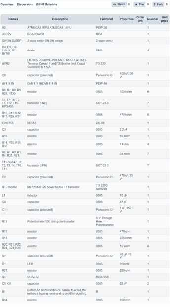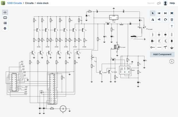 El esquema de circuitos 123D está listo y usted puede extraer el b.o.m. para ordenar todos los componentes para su reloj nixie.