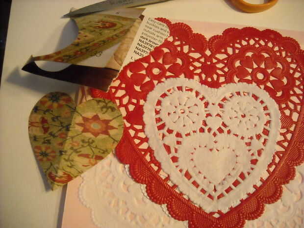 Comience a cortar piensa de las revistas y pegamento para San Valentín.