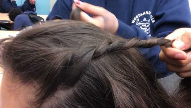 Tomar dos piezas de pelo de la parte delantera y gire ambos juntos!