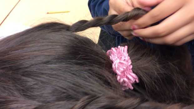 Ahora poner el pelo pelo extra en la parte inferior en una cola de caballo
