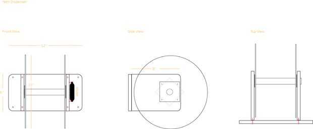 He incluido un diagrama con las medidas y especificaciones para la construcción del dispensador de hilo. Fácilmente podría apropiado un carrete de una bobina de alambre o cuerda y utilice en su lugar, pero decidí fabricar mis propios por razones estéticas.
