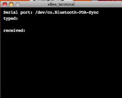Lo único que no voy a es cómo configurar el xBees. Lo hice muy fácilmente (en un mac) transcribiendo algún código de libro de Igoe que utiliza el proceso para crear un terminal simple para la programación de lo xBee. Ese código está en la Página 198.