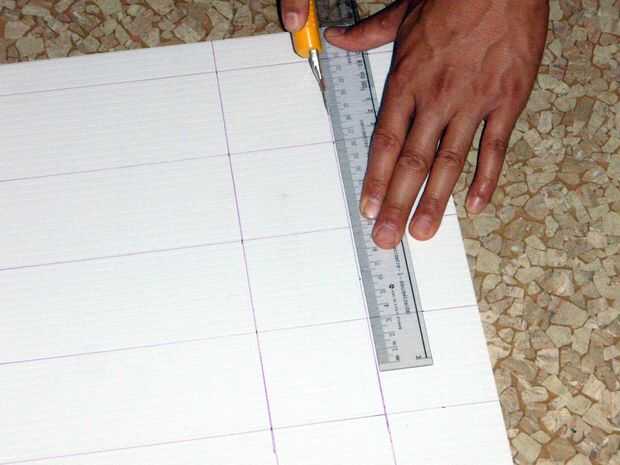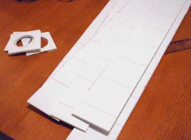 Dibujar círculos de diferentes tamaños en las plazas y cuidadosamente recorte con tijeras o un cuchillo del exacto. Puede dejar algunos sin círculos para actuar como un fondo para el cubo.