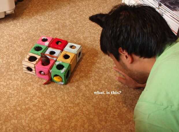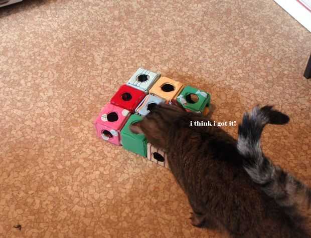 Se trata de un alimentador de gato automático basado en el taladro.  Varias libras de comida para gatos se almacenan en el depósito por encima de la barrena, y el alimentador está programado para dispensar automáticamente 1/4 de taza de alimento en l