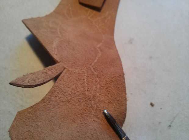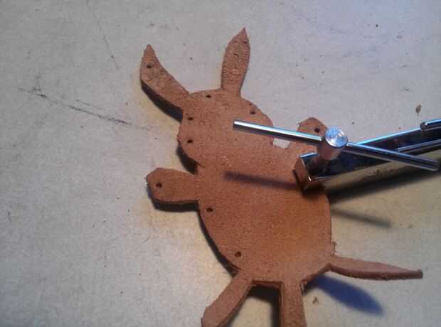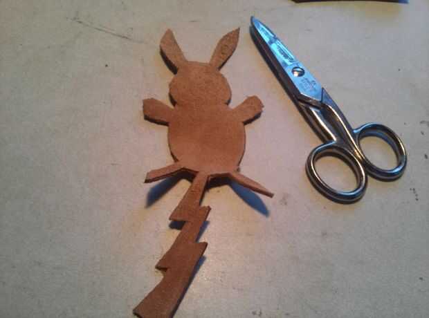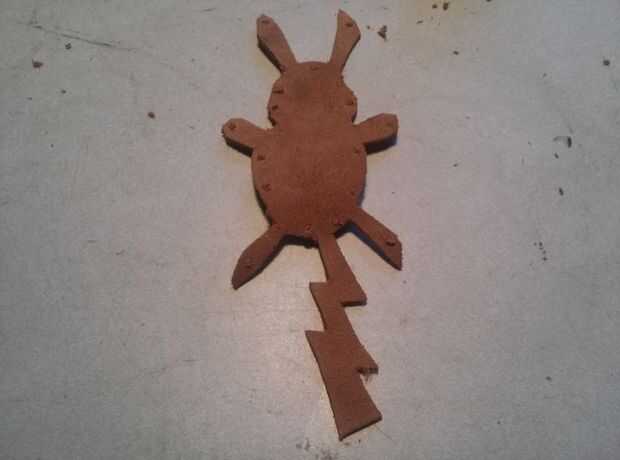 Con un par de tijeras para chapa (carrera Phoneman). Fui alrededor de la imagen esbozada. Una vez que se cortó fuera usa un golpe de la joyería para colocar los agujeros donde yo quería adjuntar mis cadenas los pies y las manos y orejas de prioridad desde la eran las partes más extendidas. Un golpe de cuero probablemente habría funcionado mejor, pero usé lo que tenía. Opté por no para punzonar taladros en la cola desde tradicionalmente (jajaja) es izquierdo colgando o cortado.