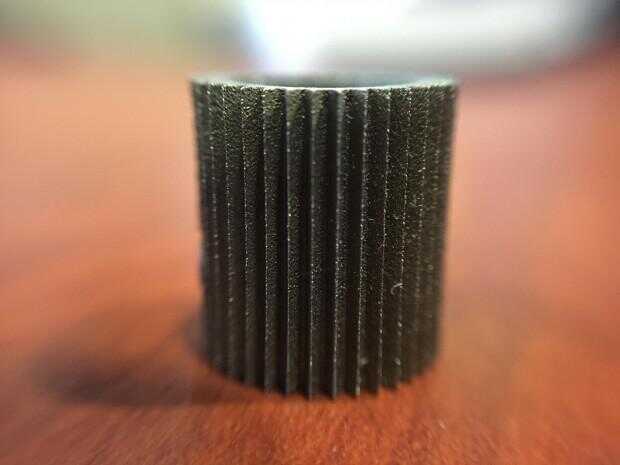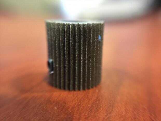 E3D corta un engranaje de aspecto muy limpio. En comparación con algunos de los otros, los dientes parecían muy precisa y uniforme, y el mecanizado es limpio. De todos los engranajes, éste y el MK8 tienen el diámetro más pequeño"coche", que creo que es ventajoso para el par que puede aplicarse y la resolución más fina que se puede lograr con ellos (más pasos por mm de extrusión).