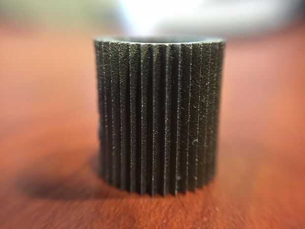 Engranaje de SeeMeCNC es mi viejo espera, que en esta foto tiene unos 10km de filamento debajo de su correa. El diámetro es relativamente compacto, los dientes son anchos y tienen un borde afilado alambre del proceso de mecanizado que muerde el filamento muy bien. Esta marcha se siente como un tanque más que los otros engranajes y son duraderos a largo plazo.