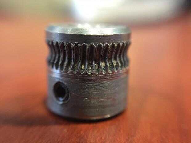 El engranaje impulsor del MK7 es ampliamente utilizado en el mundo 3D y con razón. Tiene un montón de pequeños dientes afilados, y tiene además un surco más profundo cortado para el filamento a pasar, que en teoría le daría más superficie de contacto sobre el filamento.