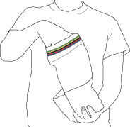 usar una máquina de tejer circular para tejer un sensor estiramiento con hilos conductores y regulares en cinco minutos! Los valores de la gama del sensor de aproximadamente 2.5 Mega Ohm cuando relajado, para 1 Kilo ohmio cuando completamente estirad