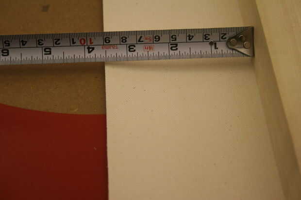 Rasgar el lienzo aproximadamente 3 pulgadas más grande por los cuatro costados. Pone tu lienzo (lado de gesso abajo) en un área de trabajo limpia. TechShop tiene mesa de trabajo grande que maravilloso para estirar tu lienzo y la zona es agradable y limpio y que no está en el suelo.  Colocar el bastidor sobre el lienzo, con la parte superior del punto marco.