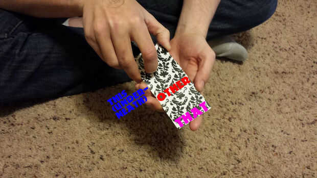 R. el bit siguiente implica algo que se llama un modificado doble ascensor. Llevar a cabo el modificado ascensor doble para dar la apariencia que va a retirar la tarjeta superior cuando la carta de arriba se esconde detrás de esta tarjeta y sólo esta tarjeta se muestra.