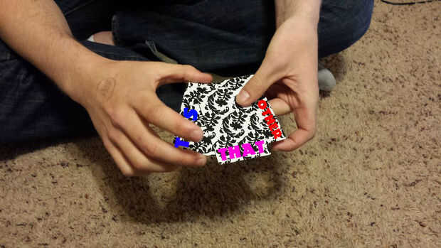 B. doble Levante esta tarjeta y que tarjeta. Son las dos cartas de la parte inferior. ¡ Entonces volver a mostrar esta tarjeta.