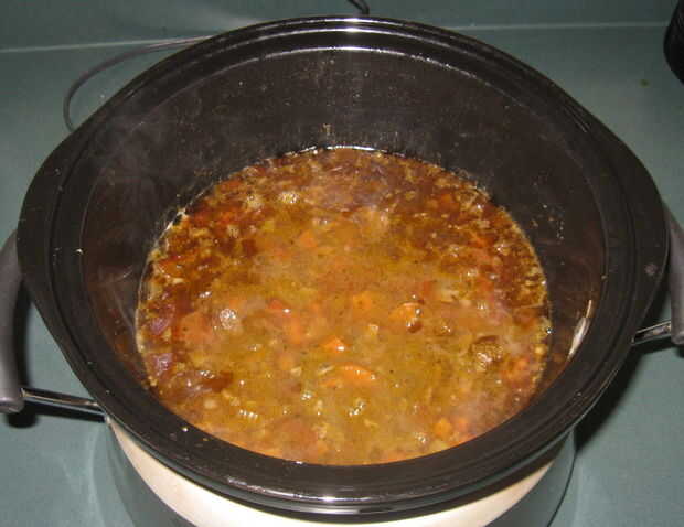 Después de unas 8 horas de cocción en la olla de cocción lenta que debe ser la carne tan tierna desintegrarse en la horquilla y las verduras deben ser tiernas. Añadir la sal y espere 20 minutos antes de servir.