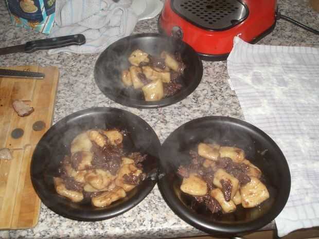 1/2 botella de vino tinto abundante (la otra mitad es del chef).