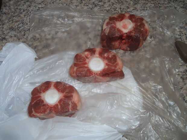 3 secciones de tamaño decentes de rabo de Toro (sobre una pulgada de espesor).