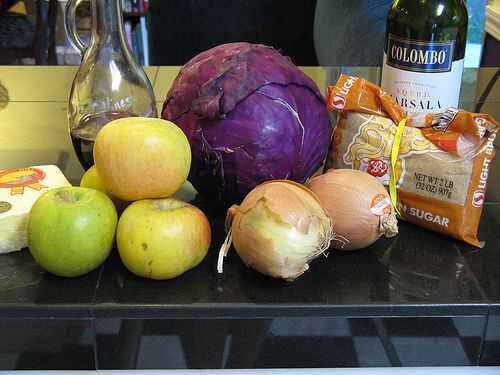 Paso 1: Ingredientes - cebollas, repollo y manzanas