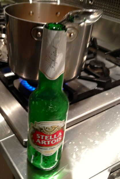 Ahora que la carne esté dorada y las verduras son saltear ', añadir a la carne y cocine durante diez minutos. Ahora, agregue la cerveza junto con los guisantes, maíz y una taza de agua. Dejar cocer durante aproximadamente un 1 -1 1/2 horas fijar a fuego lento o hasta que la carne esté tierna.