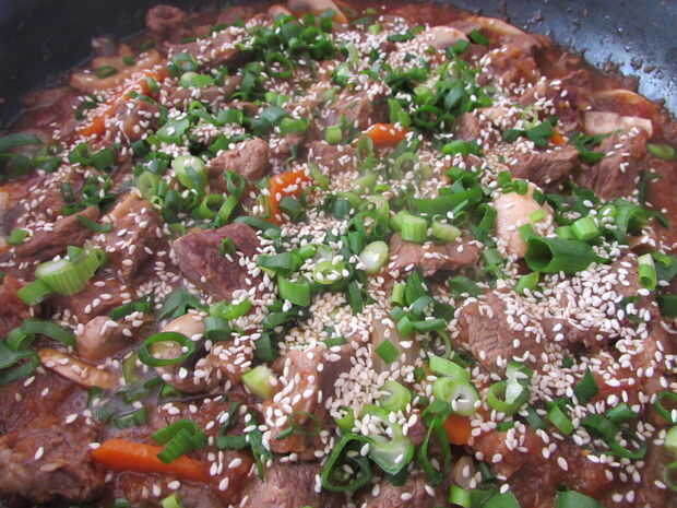 Nos encanta la carne pero tratamos de hacerlo con menos grasa pero lleno de sabor. Esto es por eso que me gusta esta receta, porque el tocino y previamente hirviendo la carne quita mucho la grasa pero aún conserva el sabor de la carne. También agrego en un montón de setas para hacer más saludable. Esto no es una receta de estofado de ternera coreana auténtica, es sólo cómo hacerlo en nuestro hogar.