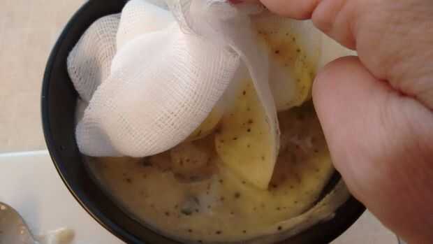 Corte la longitud adecuada de tela de queso (teniendo en cuenta que él es generalmente doblado longitudinalmente en tercios, por lo que abrirá muy bien para cubrir el pavo). Luego tomar que la longitud del paño de queso y poner todo en su salsa de mantequilla preparada hilvanado y revuélvalo todo hasta que ha empapado completamente.