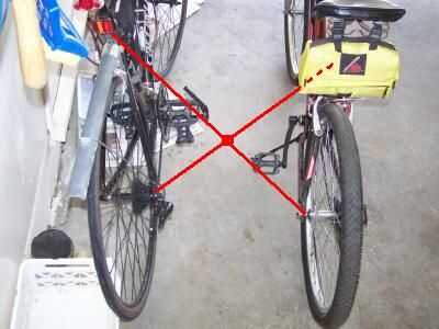 Las bicicletas deben ser estables verticalmente así como lateralmente. El refuerzo lateral verde de pasos anteriores no se muestra en este punto de vista por lo que es posible concentrarse en la estructura y la localización de los refuerzos verticales. Es un patrón de "X". Se une por debajo de los asientos y en la parte trasera de los tirantes de cadena. Donde los miembros de la "X" cruzan uno con el otro, se fijan para hacer dos triángulos rígidos.