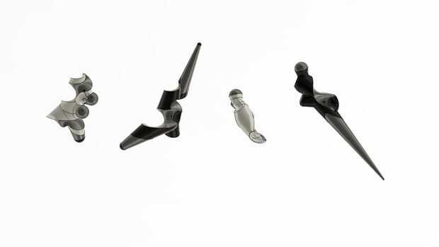 Formas helicoidales representan un desafío particularmente intenso para mecanizado CNC. Giratorio socavados temas fijación irregular curva volúmenes y probar el temple de incluso el más experimentado de los maquinistas. Pequeña escala CNC trabajado a máquina piezas helicoidales se fabrican normalmente con máquinas que ofrecen un continua rotación eje 5, como se ve aquí: