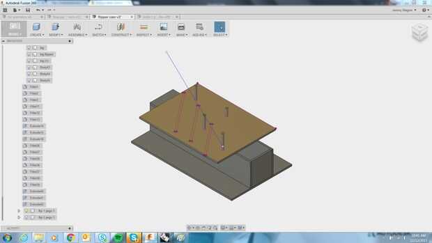 Para la orientación inicial, nuestra estrategia común en rodajas ofrece una solución bastante fácil. Simplemente sacó 3 de las láminas hacia abajo y en rodajas los planos. Ahora tengo 3 aletas que puedo inscribirme para una placa utilizando la misma técnica en configuración 1 - proyectar un esbozo en la fusión de las aletas y grabado láser. He añadido un detalle de la ficha a las aletas para que fácilmente podría ser quitados después de girar la acción. Para la rigidez agregada, hice una plantilla 4 espigas con el bot de la tienda que las aletas de la culata pueden deslizar y atornille. La plantilla se alinea con la etch y tornillos a la placa, los tornillos comunes a la plantilla y la placa se centra otra vez a la plataforma mediante el bloque de registro...