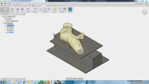 Después de luchar con la labor de seguimiento y montaje de todas las rodajas para stock y luchando con encolado y fijación de las formas irregulares resultantes y alimentada por la confianza de registrar con éxito y mecanizado de las piezas, decidí afrontar el reto de fresado de tirón. El nuevo desafío aquí es encontrar una manera para fijar una forma irregular de valores antes y después de girar.