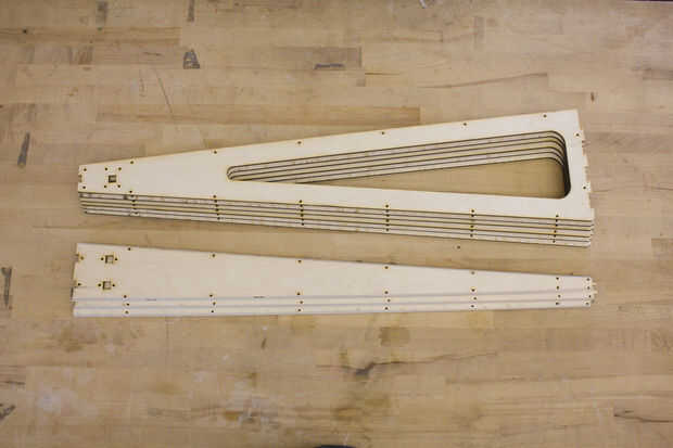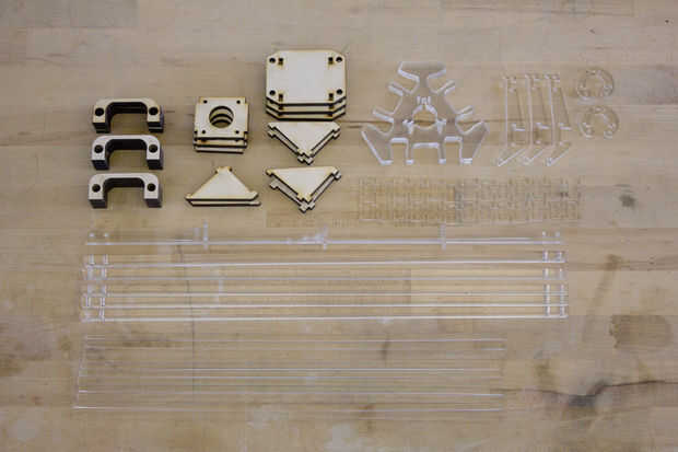Cada parte individual se distribuirán en AutoCad o Rhino. Hacer un archivo separado para los diferentes tipos de material y espesor del material utilizado. Luego corte los materiales láser.