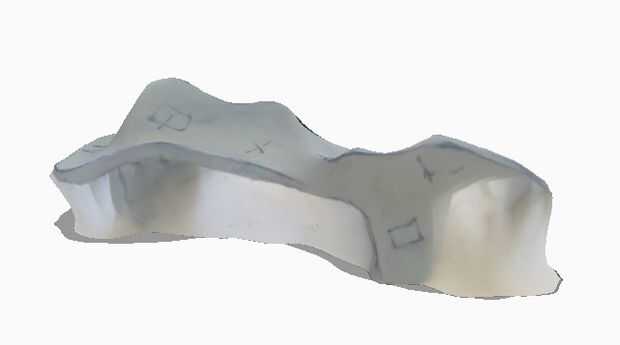 123D catch es una aplicación gratuita que te permite crear análisis 3D de objetos físicos. Después de descargar la aplicación, configurar el modelo de banco de arcilla en un taburete con un fondo de papel de periódico: la aplicación utiliza patrones irregulares para registrar las fotos. También he añadido marcas para el modelo de arcilla. Tomé una serie de 20 fotografías secuenciales en pequeños incrementos alrededor del modelo de arcilla, desde un ángulo bajo ángulo de media y alta-ángulo - un total de 60 fotos. Subir las fotos a la nube de captura 123D y el programa de unir las imágenes y crear un modelo de malla 3D de las fotos. El modelo puede ser reparado en la edición de malla en la aplicación web. Su bastante fácil de usar! Aquí están algunos consejos para obtener una captura más exitosa.