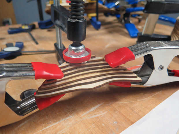 - Abrazadera de la pila para que usted obtenga buena, incluso la presión. Poco de pegamento debe exprimir hacia fuera los lados - limpia para arriba con el trapo húmedo. Dejar en las mordazas para por lo menos 30 minutos. Mantener la combinación de pilas hasta que quede una sola pieza sólida.
