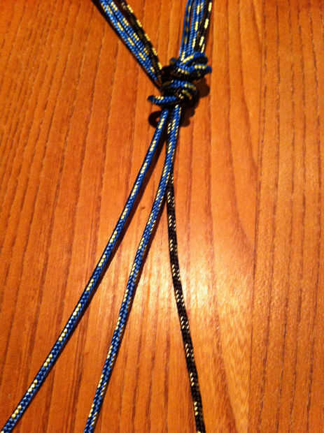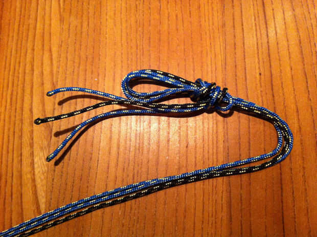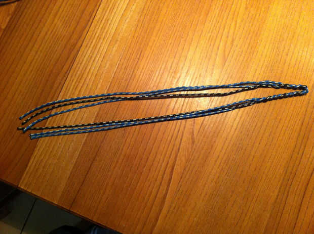 En las fotos he utilizado cable de 3mm y cortar a un metro de largo. Si uso de cable más grande o una trenza de 6 filamento más largo usted tendrá que ajustar la duración a sus necesidades.