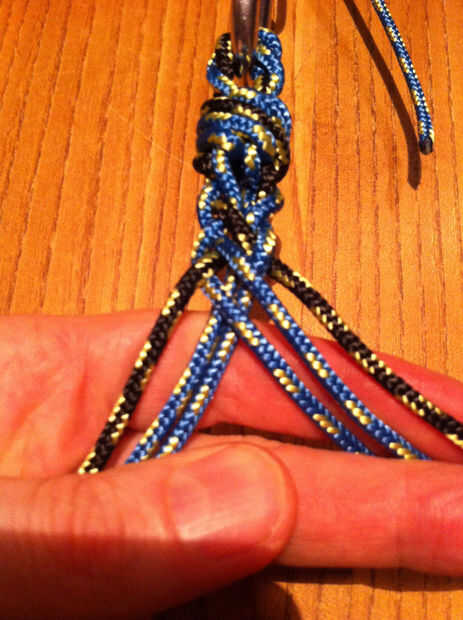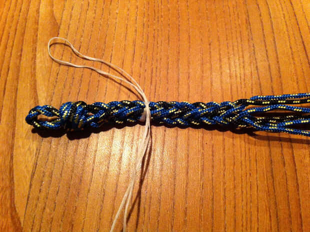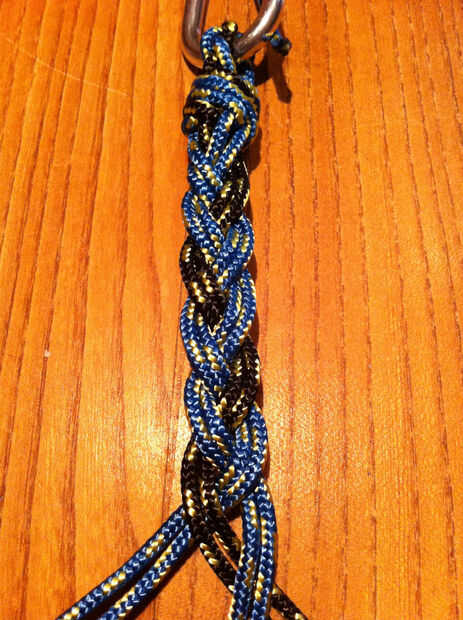 OK, tienes 6 hebras, hay un número de diversos patrones que usted puede hacer. Jugar y hacer algo. Mantener los hilos organizados y bajo incluso para conseguir una trenza hasta la tensión. Seguir adelante hasta que es más de lo necesario, a continuación, utilizar un nudo de la bolsa para agarrar en la longitud correcta.
