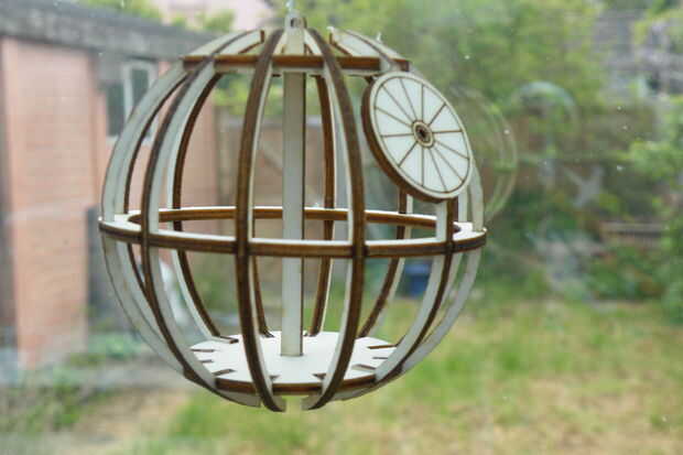 Una vez seco el pegamento, la estrella de la muerte está listo para mostrar - un trozo de hilo a través del pequeño orificio en la parte superior de la pieza de eje, y están ordenados.