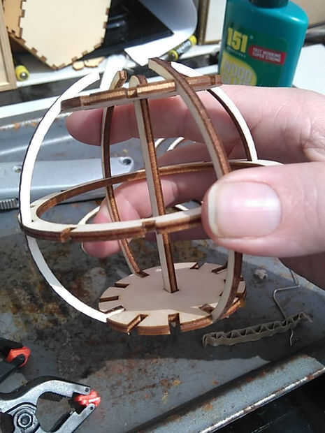 Antes de que el pegamento esté completamente seco en las dos primeras costillas, es necesario agregar las costillas terceros y cuarta, esta será su última oportunidad para conseguir las piezas polares y el nivel del anillo Ecuatorial.