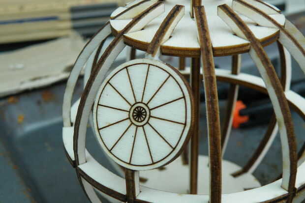 Lo de big shooty laser-plato cabe en el hueco que ha dejado entre la costilla parte más largo (que ya han pegado en su lugar) y la costilla parte corta (que no lo has hecho).