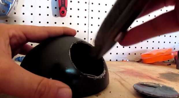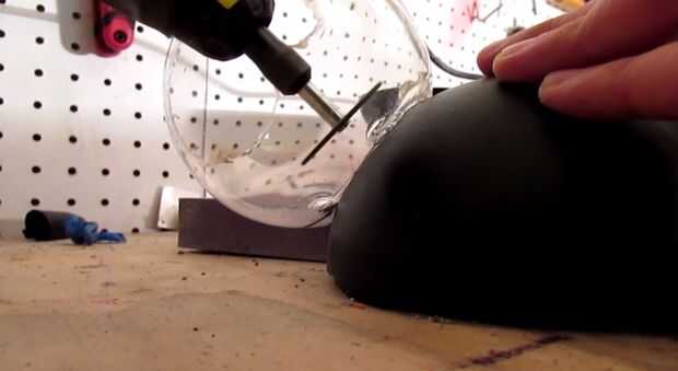 Usar un casquillo del metal tiene poniendo alrededor a un círculo en el dispensador de la máscara. Este será el plato estrella de la muerte. Después de enmascarar adelante recórtalo con una dremel