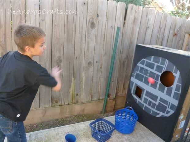 Fue una fiesta temática de Star Wars y he añadido cestas de tienda de dólar adicional para los individuos más jóvenes del grupo tratar de conseguir la bola en lugar de intentar apuntar para los agujeros en la caja.