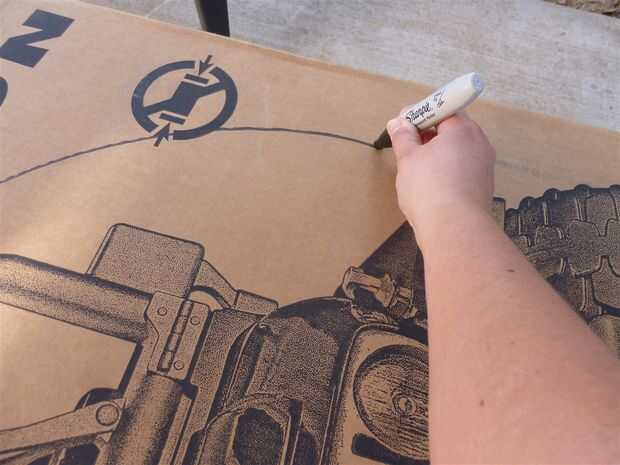 Las áreas que se reduciría a se muestran en las fotos con garabatos a través de ellos. La foto original que vi en Pinterest tenía solamente un agujero circular y he hecho dos agujeros para hacer cosas diferentes.