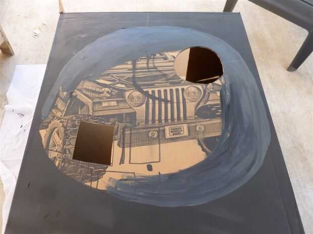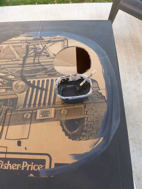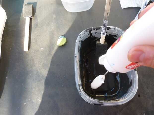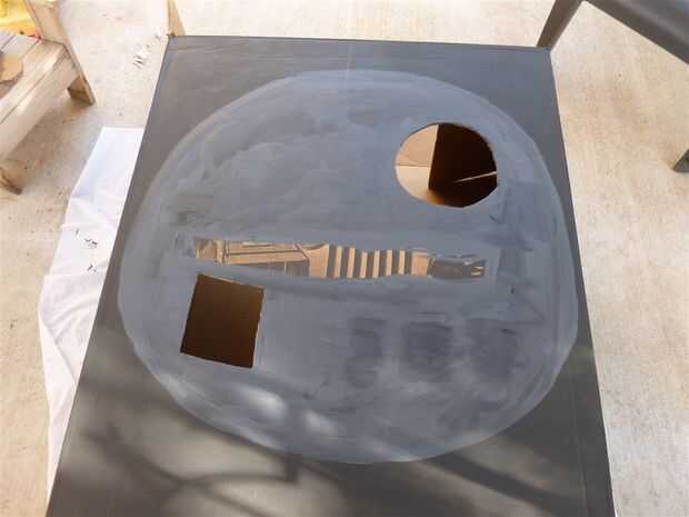 Tomé la pintura negra utiliza para el fondo y añade una pequeña porción de pintura acrílica blanca, para activar el fondo del color principal de la estrella de la muerte.